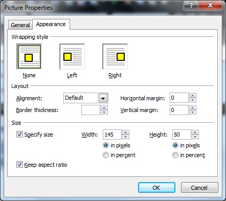 Radi ljepšeg izgleda korisnik mo\e da briše okvir oko slike ili da ga postavlja (BORDER SIZE = 0 odnosno veći od 1). PICTURE PROPERTIES dijalog prozor, APPEARANCE TAB, BORDER THICKNESS polje - izabrati vrijednost.
