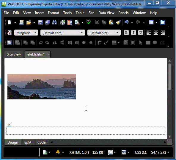 EXPRESSION WEB ima mogućnost primjene efekta prikaza slike u nijansama sive boje /GRAYSCALE/ (slika 2.)