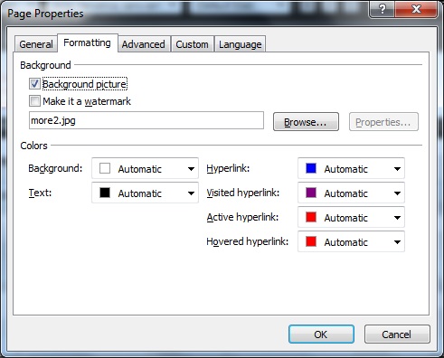 Slika 1. PAGE PROPERTIES dijalog prozor