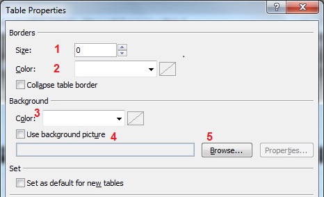 Boja pozadine table se bira: