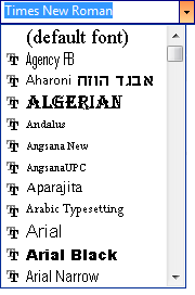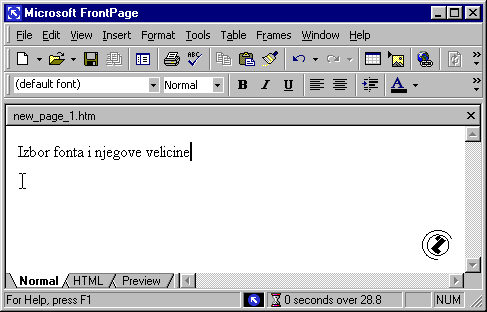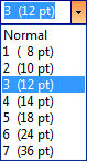Otvorena FONT SIZE padajuća lista. htm(l) ima 7 veličina fonta