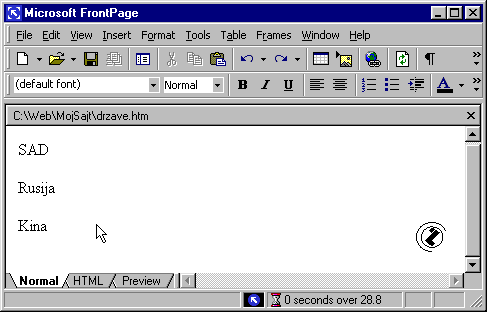 Postavljanje bulita (iz Toolbar-a), postupak: