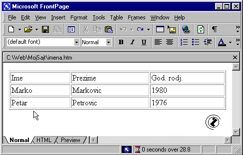 Brisanje cijele tabele, postupak: 1. Selektovati cijelu tabelu (sve celije) 2. Meni Edit 3. Opcija Cut 4. Kraj