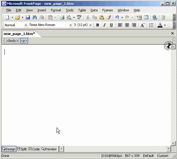 Izbor načina prikaza dokumenta u FRONT PAGE-u, postupak: 1. Klik na odgovarajuće tab izbora oblika prikaza: