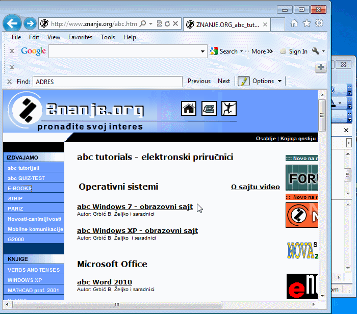 Hiperlik kao adresa /HYPERLINK AS ADDRESS/, postupak: