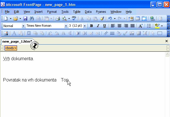 Dodavanje hiperlinka na BOOKMARK-a u istom fajlu, postupak: