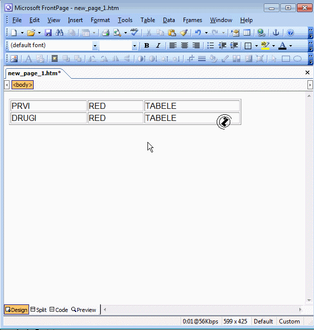Poravnanje tabele /TABLE ALIGNMENT/, postupak: