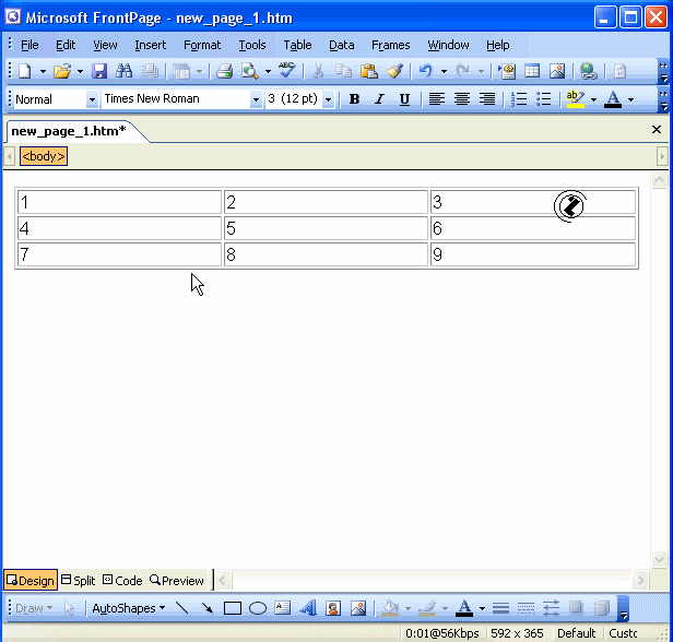 FRONT PAGE omogućuje povezivanje ćelija, opcijom MERGE CELLS iz TABLE menija.