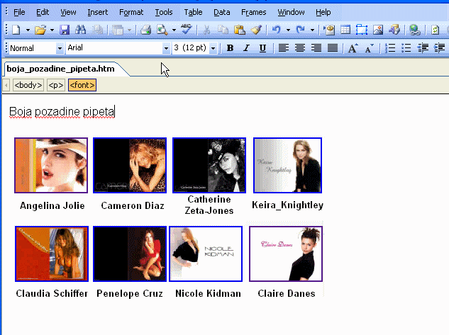 Tabela boje pozadane /TABLE BACKGROUND/, postupak: