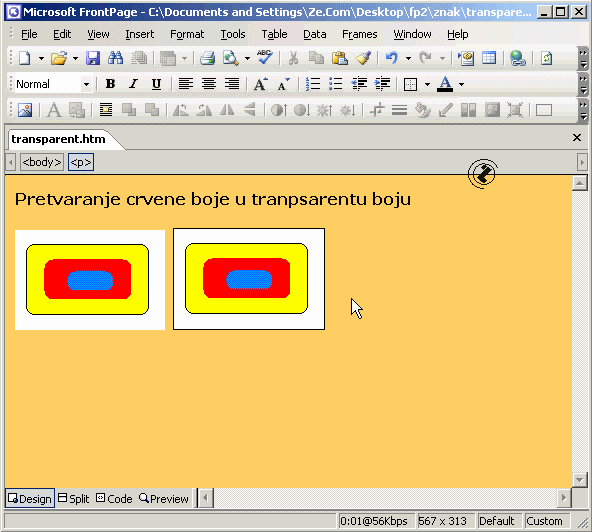 Transparentan .gif podrazumijeva da se jedna od izabranih boja ne prikazuje tako da boja pozadine prolazi kroz sliku. Transparetni .gif je moguće kreirati u boljim grafičkim programima. FRONT PAGE omogućuje kreiranje transparenti .gif.