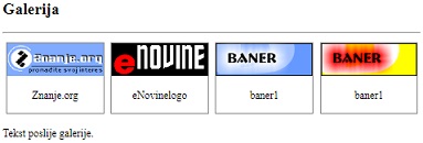 N a p o m e n a:Može se koristiti i kod za ispis teksta u novom redu poslije uređene galerije (float: left...):
