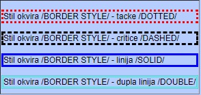Slika 2. Tipovi okvira /BORDER STYLE/