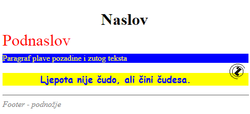 Primjeri II dio - Linijski CSS /INLINE CSS/