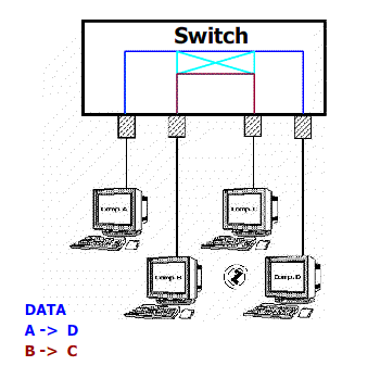 SWITCH se koristi u toplogiji zvijezde /STAR/ kao zvjezdište, elemenat za spajanje. Prikazana je unutrašnjost SWITCH-a da se vidi princip rada pri predaji/prijemu podataka i šta se dešava u trenutku pokušaja istovremene predaje podataka.