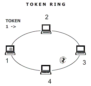 TOKEN RING organizacija mreže je kad su računari povezani u prsten. Računar prima podatke od jednog računara a predaje ih drugom. Sihronizacija se izvodi sa TOKEN-om. Računar kod kojeg je TOKEN ima pravo da šalje podatak. Podatak /DATA/ se kreće od jednog do drugog računara dok ne dođe do računara čiju adresu nosi. Taj računar prihvata podatak DATA, a zatim generiše i šalje sljedećem računaru TOKEN tako da omogući sinhronizaciju slanja i prijema podatka.
