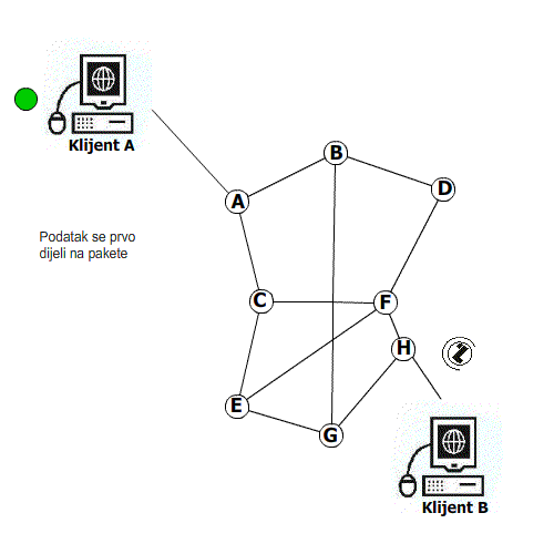 abc Internet osnove Kad je paket poslan sa računara on dolazi na IP ruter. Ruter je odgovoran za određivanje putanje /"ROUTING"/ paketa na tačno određeno odredište direktno ili preko drugih rutera. Put koji slijedi paket može biti različita od puta ostalih paketa iste komunikacije. Ruter je odgovoran za ispravno adresiranje zavisno od saobraćaja, grašaka na mreži ili drugih parametara.