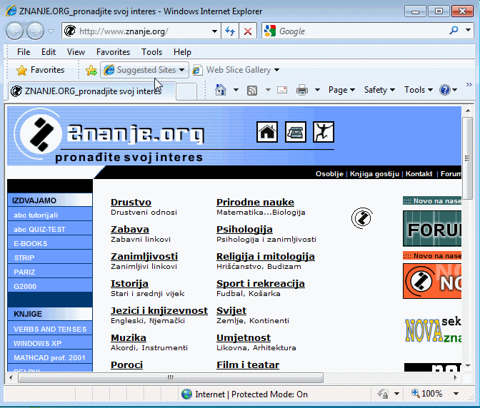 Dodavanje Web adrese u FAVORITES listu /ADD FAVORITES/, postupak: