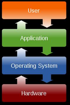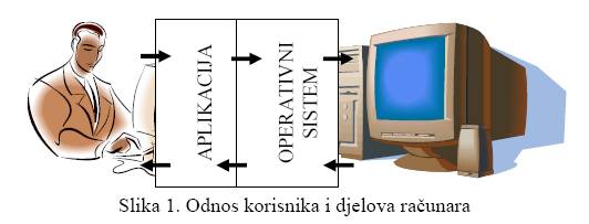 1. Naime, korisnik radi na nekoj aplikaciji (unosi tekst, sluša muziku, projektuje, računa, ...). Aplikacija koristi operativni sistem da bi izvršila obradu podataka na hardveru.