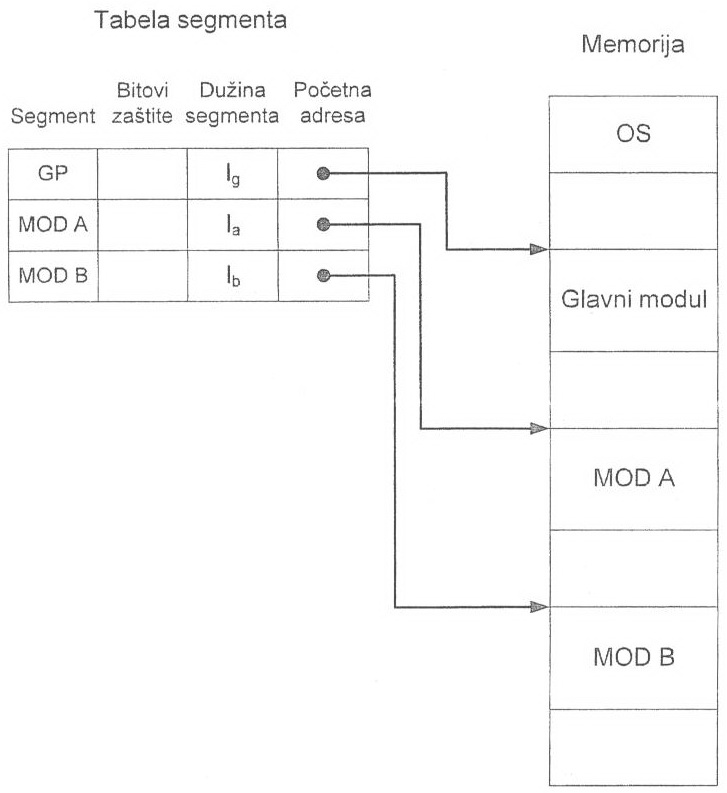 Slika 3. Pristup memoriji pomoću tabele segmenata