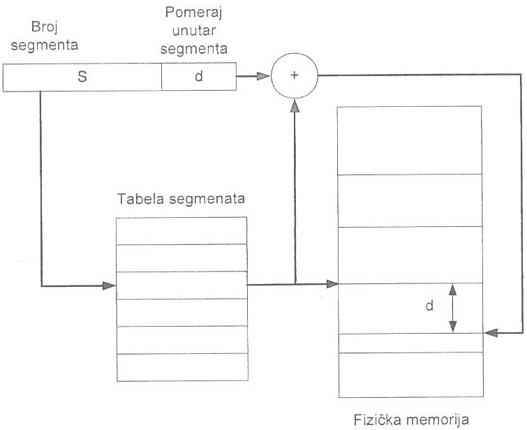 Slika 1. Preslikavanje logičke adrese u fizičku pomoću tabele segmenata