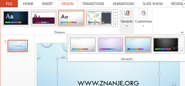abc PowerPoint 2013 tutorial - Kreiranje slajda /SLIDE DESIGN/Izbor varijante uzorka izgleda slajda /SLIDE DESIGN THEMES VARIANTS/
