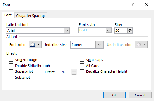 Primjenu imena fonta, veličine, stila - masno, koso i podvućeno, boje itd na slajdu može se izvesti iz FONT dijalog pozroara koji se otvara iz HOME TAB, FONT grupe /FONT GROUP/ i izabrati dugme za otvaranje FONT dijalog porzora.