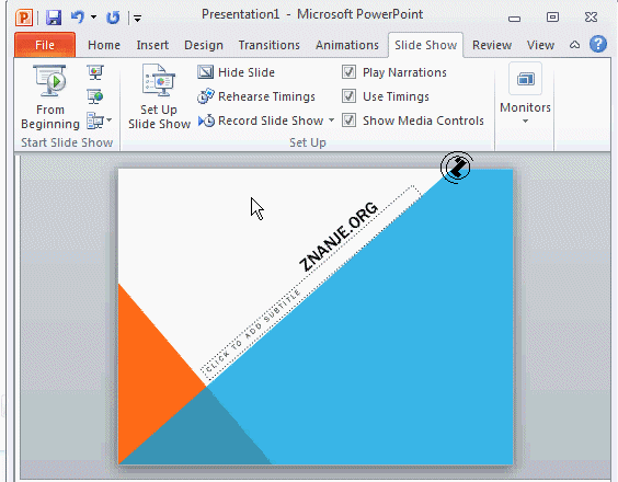 SET UP SLIDE SHOW LOOP CONTINUOUSLY UNTIL ESC - posavljanje prekidača