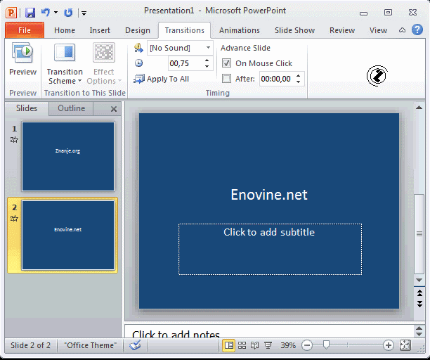 Kad u toku SLIDE SHOW se pritisne taster ESC SLIDE SHOW će biti zaustavljen i pojavljuje se POWERPOINT prozor sa dokumentom na zaustavljenom slajdu.