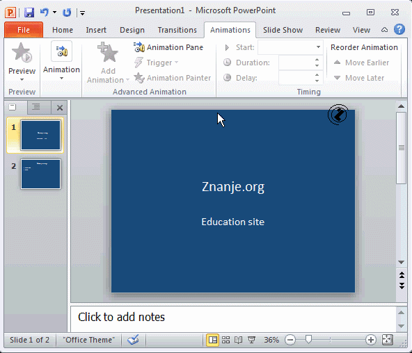 ANIMATION ANIMATION PANE - uključenje /ON/
