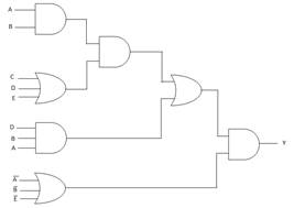 Na sljedećoj slici je data logička šema za prvobitnu funkciju, a na narednoj je šema uprošćene funkcije: