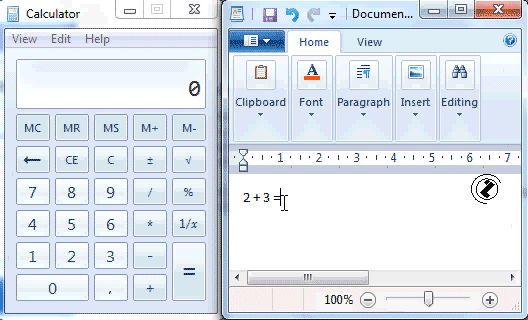 Kopiranje izraza 3*7 bez znaka jednakosti iz WORDPAD-a u CLIPBOARD i nazad.
