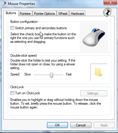 - Otvara se MOUSE PROPERITES dijalog prozor (animacija prethodnih aktivnosti ...).