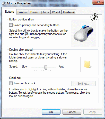 - Izbor miša za ljevake dešnjakev/SWITCH PRIMARY AND SECONDARY BUTTONS/ CHECK BOX.