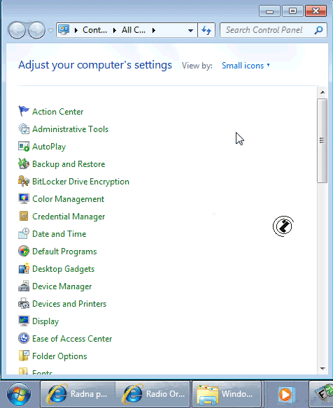 - Otvaranje CONTROL PANEL prozora (otvaranje animacija ...).
