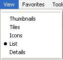 Izabran je LIST oblik prikaza kao jedna od opcija ove grupe opcije (THUMBNAILS, TILES, ICONS, LIST, DETAILS).