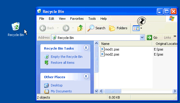 - Otvara se meni precice SHORT CUT meni RECYCLE BIN.