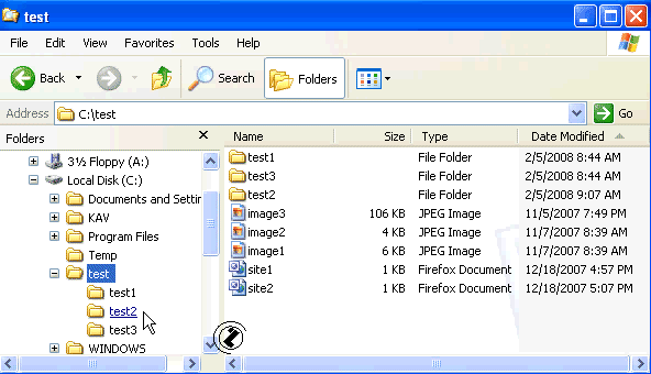 - PASTE opcija (pojavljuje se kopija foldera (npr. test3).