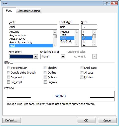 Font je važan u radu sa tekstom, a pogotovu u kvalitetnim procesorima teksta kakav je WORD. Izgled fonta je odredjen njegovim imenom, primjeri na sljedećoj slici.