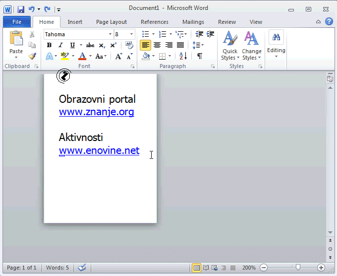 Prelom teksta /PAGE BREAK/ LAYOUT TAB, postupak: