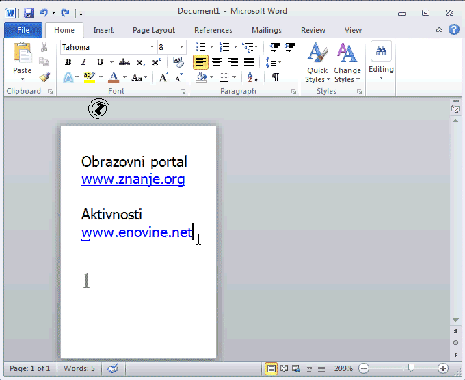 Broj strance pri prelomu teskta /PAGE NUMBER & PAGE BREAK/, postupak: