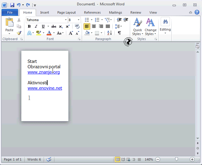 Broj strance pri novoj sekciji /PAGE NUMBER & SECTION BREAK/, postupak: