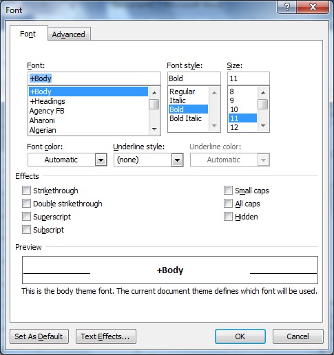 Parametri font se mogu birati iz: