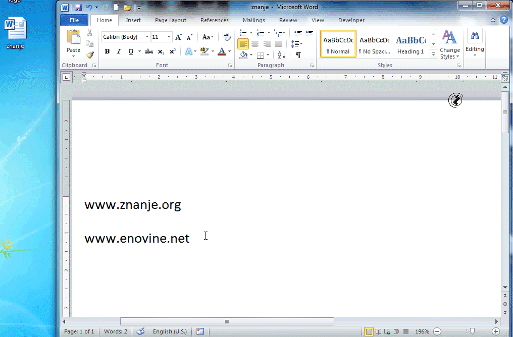 - Na folderu (u ovom slučaju na DESKTOP-u) se pojavljuje novi fajl - WORD-ov dokument.