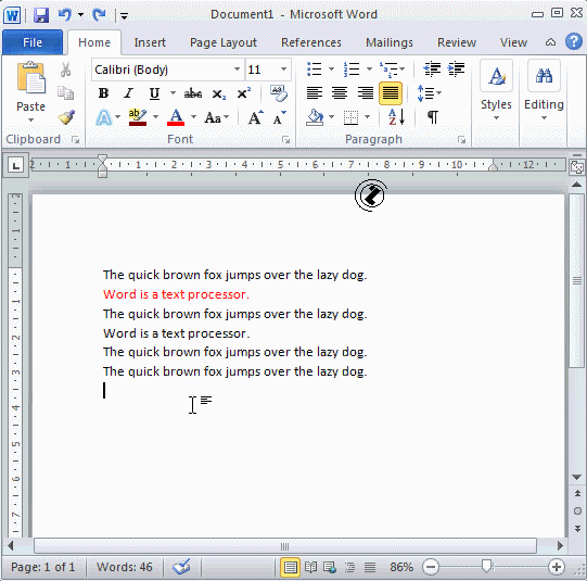 Premještanje /CUT/ dugmetom iz trake /RIBBON/, postupak: