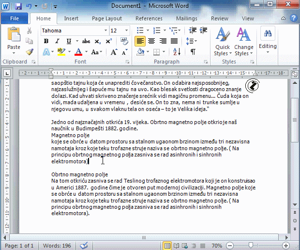 WORD omogućuje izbor parametera kolone iz COLUMNS dijalog prozora /COLUMNS DIALOG BOX/. Iz PAGE LAYOUT TAB, PAGE SETUP grupa, COLUMNS dugme, MORE COLUMNS opcija. Izabrati parametre.