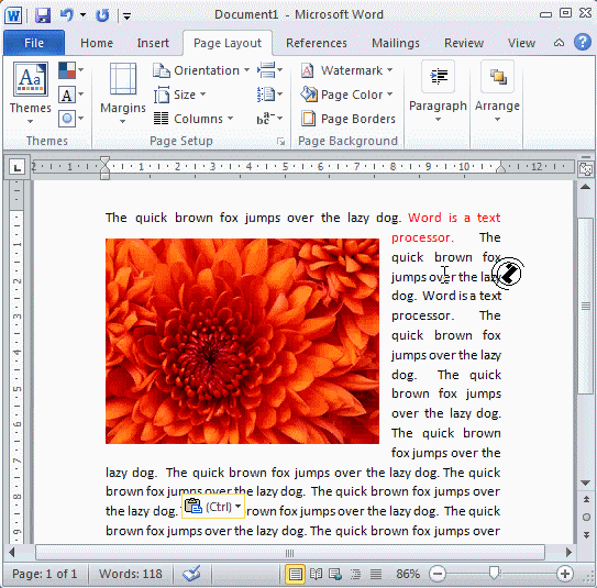 Promjena mjesta slike /PICTURE POSITION/ u dokumentu se izvodi postavljanje pokazivača miša na sliku, izgled pokazivača se mijenja znak plus sa strelicima u sve četiri strane . Metodom prevlačenja /DRAG & DROP/ se mijenja slike /PICTURE POSITION/ u dokumentu.