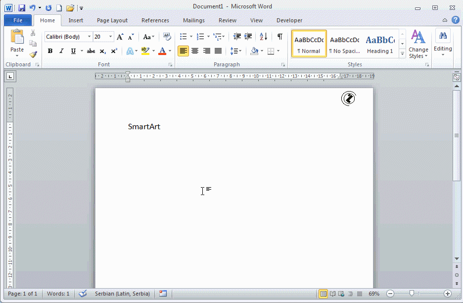 SMARTART - CHOOSE SMARTART GRAPHIC dijalog prozor /CHOOSE SMARTART GRAPHIC DIALOG BOX/ se izvodi iz INSERT TAB-a, ILLUSTRATIONS grupa, u ILLUSTRATIONS grupi, INSERT SMARTART dugme