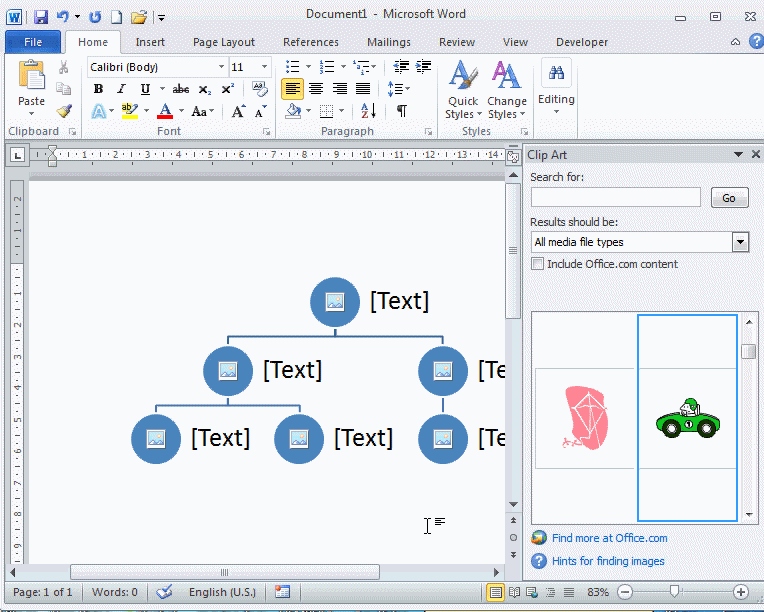 SMARTART - Dodavanje slike u pametni grafikona /SMARTART GRAPHIC INSERT PICTURE/ iz CLIPART-a otvaranjem CLIPART-a, izborom slike i kopiranjem u pametni grafikon.