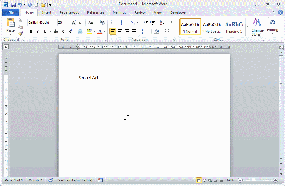 Dodavanje pametnog grafikona /INSERT SMARTART/ se izvodi iz INSERT TAB-a, ILLUSTRATIONS grupa, u ILLUSTRATIONS grupi, INSERT SMARTART dugme