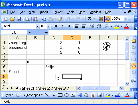 - Move mouse pointer onto wanted place (cell).
